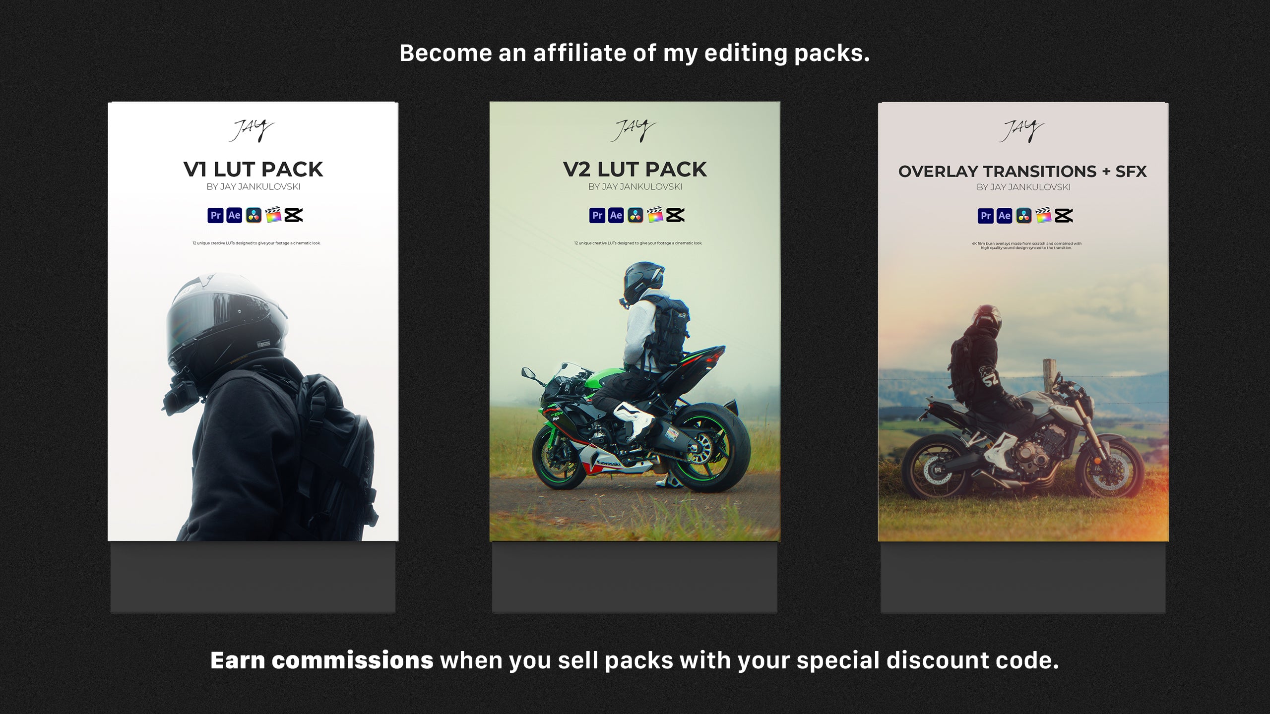 Members get the opportunity to become an affiliate of my editing packs such as the V1 and V2 Lut Pack. Meaning you will get a specialised discount code to provide to your audience, and the sales you generate will earn you commissions!